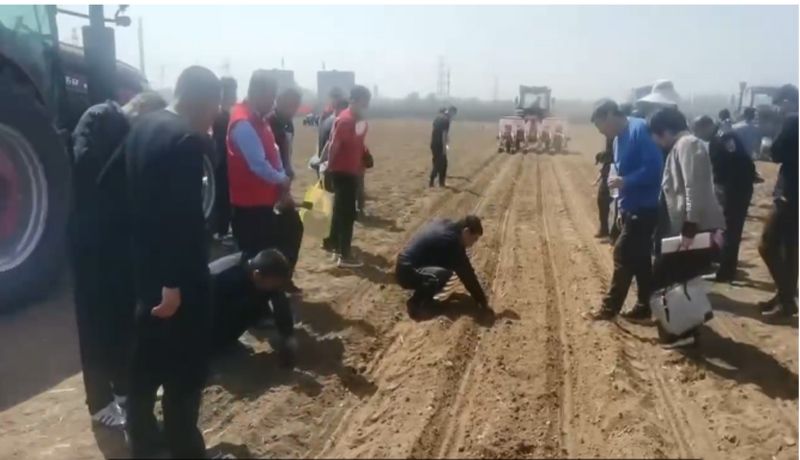 ? ? ? ? 2024年4月12日,我廠生產(chǎn)的2BMYFS-6型氣吸式高性能玉米單粒精量播種機參加了濟南市農(nóng)業(yè)機械技術(shù)推廣站組織的在章丘龍山鎮(zhèn)召開的“濟南市高